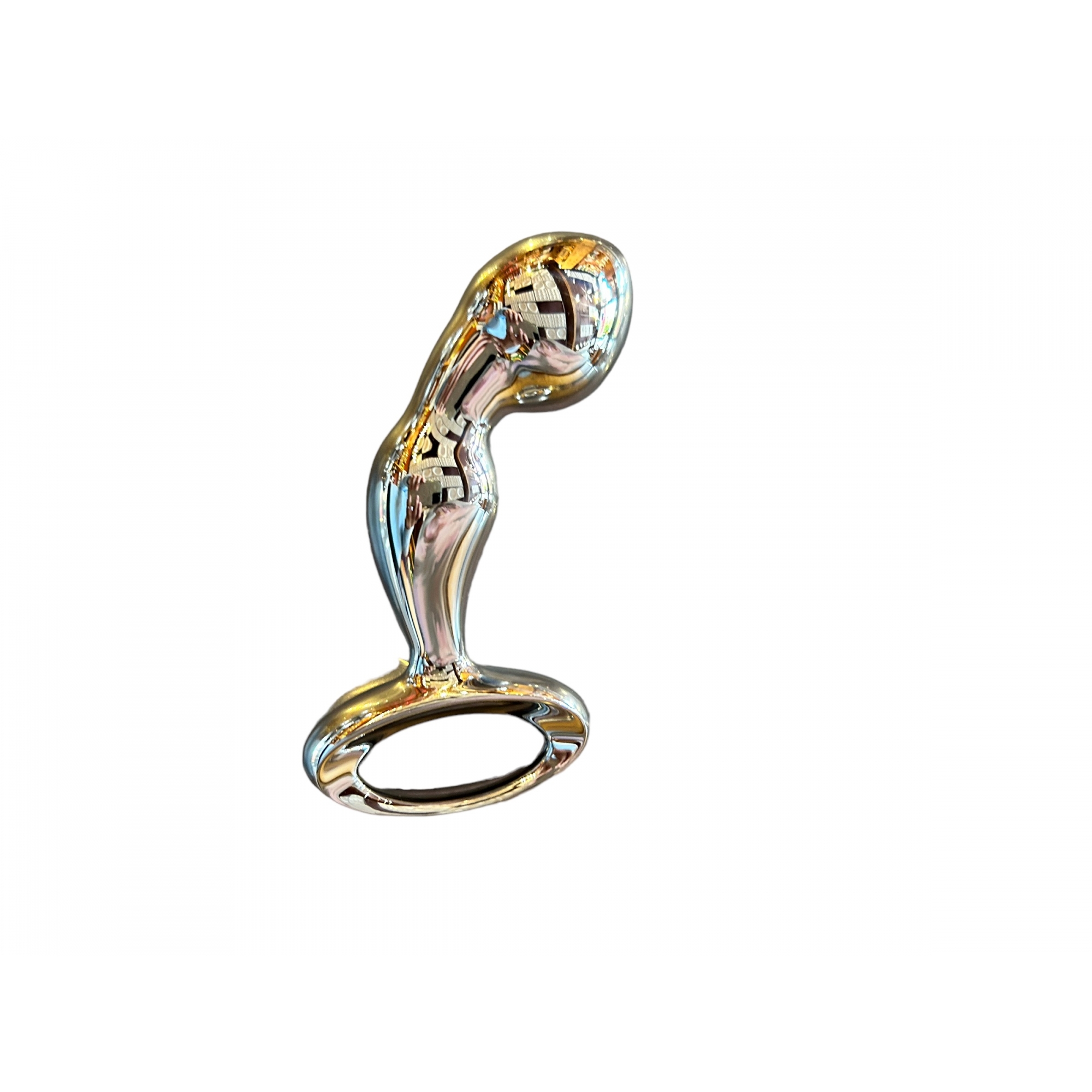 Curved to anatomical proportions, the Pfun's smoothly tapered tip penetrates comfortably to admit a sleek swollen shaft that stretches and stimulates while providing a coveted 'full' sensation. A second, longer swell waist beneath, anchoring the plug as the weighty steel shape naturally places pressure on the nerve-ending rich prostate gland. Fitting comfortably between the cheeks, the Pfun's flattened handle and slim stem holds the shaft securely in place during playtime, private time or out in public.