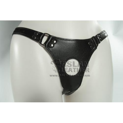 The Jaguar Slim Leather Strapon Harness by Aslan is a sexy strap-on harness, so named because of its sleek hip hugging profile. Sexy garment weight leather is buttery and soft against the skin, and it has a very plain pubic plate, without the snaps and rings of the original Jaguar. What you lose in variability, you gain in comfort for your partner! D-ring clasps keep the butt straps securely in place. The dill placement on this harness is lower than the average, allowing for extra clitoral stimulation of the wearer.